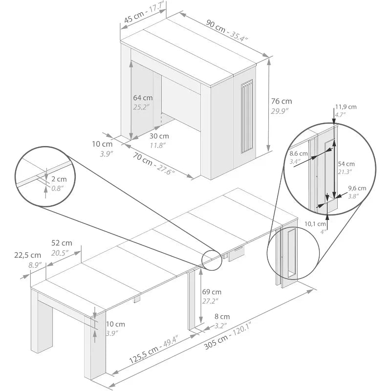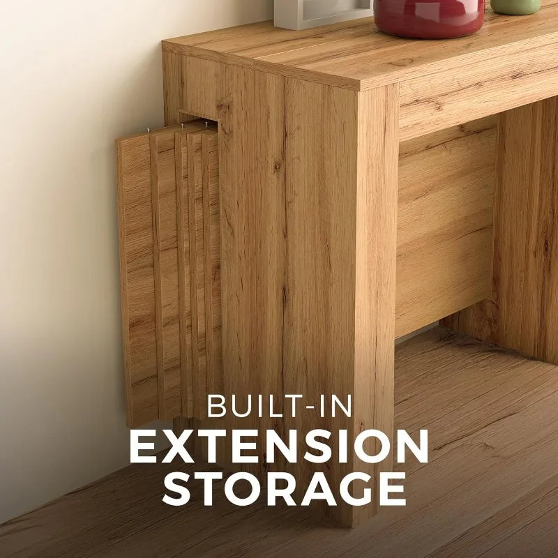 Extendable Console Table Rustic Oak 120", Italian Made with Extension Leaves