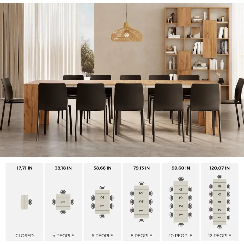 Modern, Rustic Oak Dining Table, Extentable Up To 120", Seats 4 - 12
